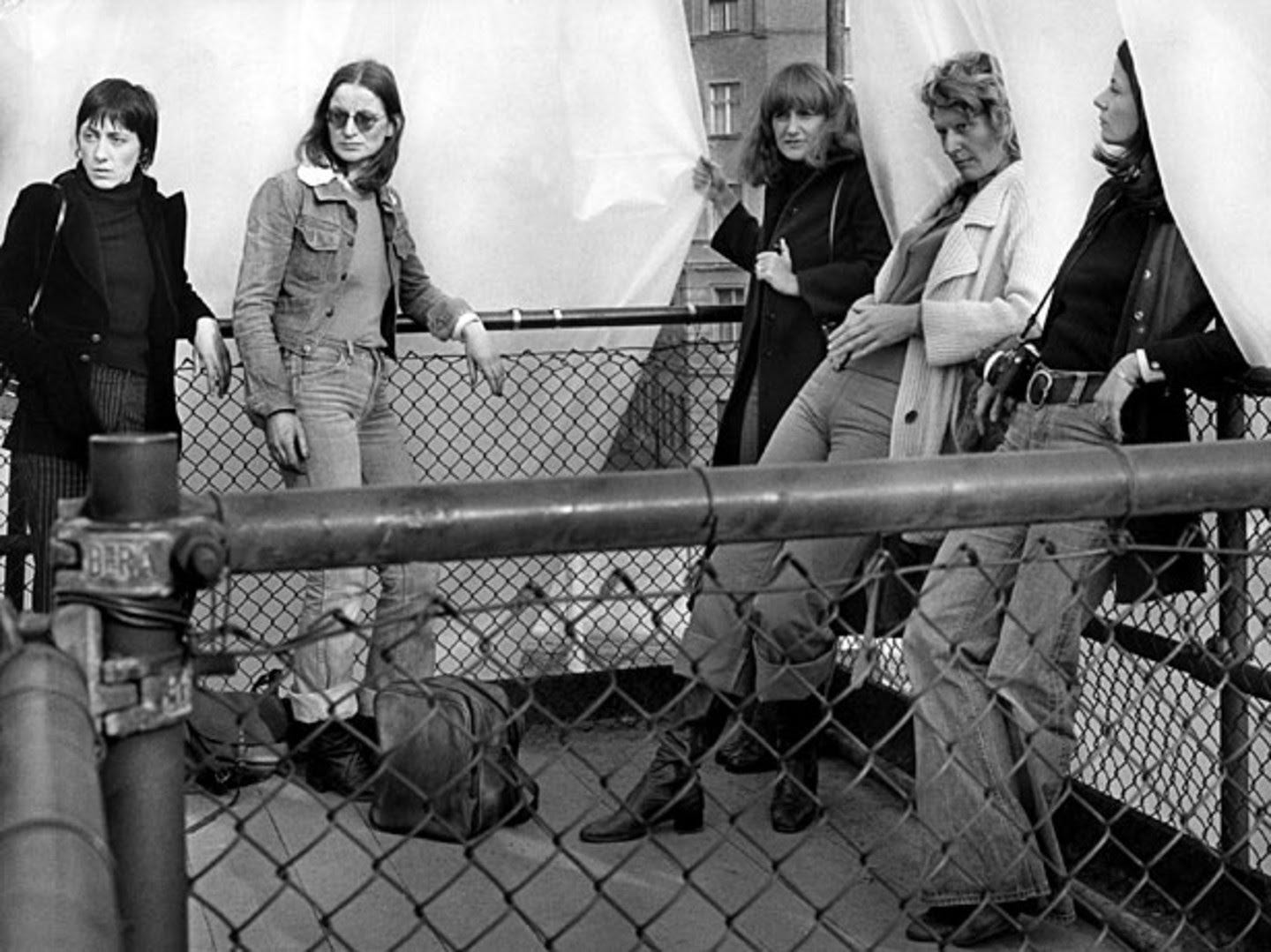 [Scena tratta da Redupers: la protagonista Edda (Helke Sanders), prima a sinistra, insieme alle compagne fotografe del suo collettivo femminista, discutono dell'installazione di una loro opera. Fonte.]